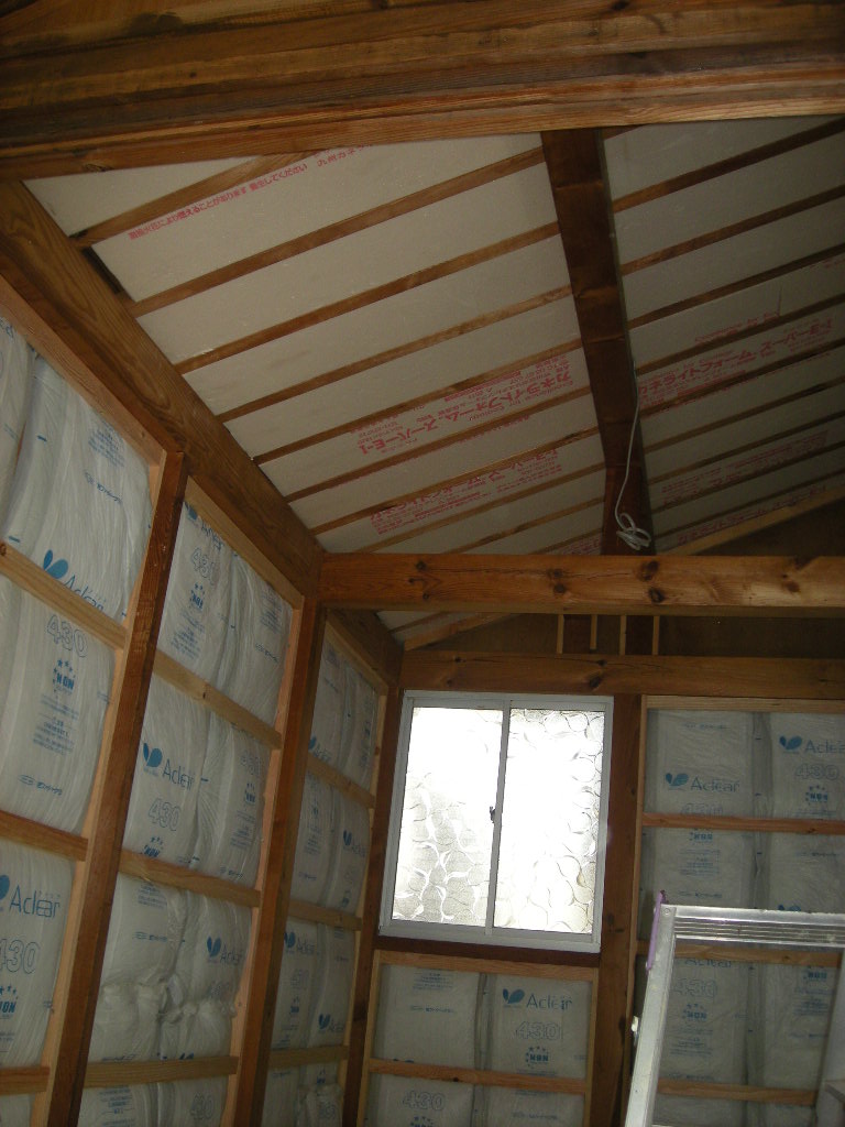 納戸の天井と壁廻りに断熱材を施工しました!!