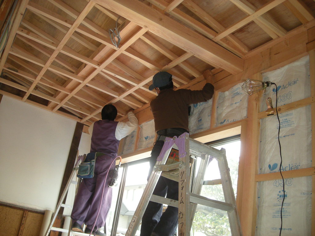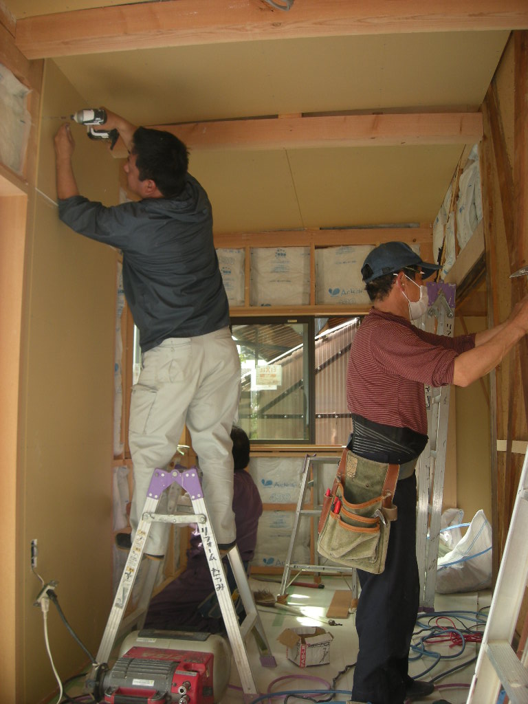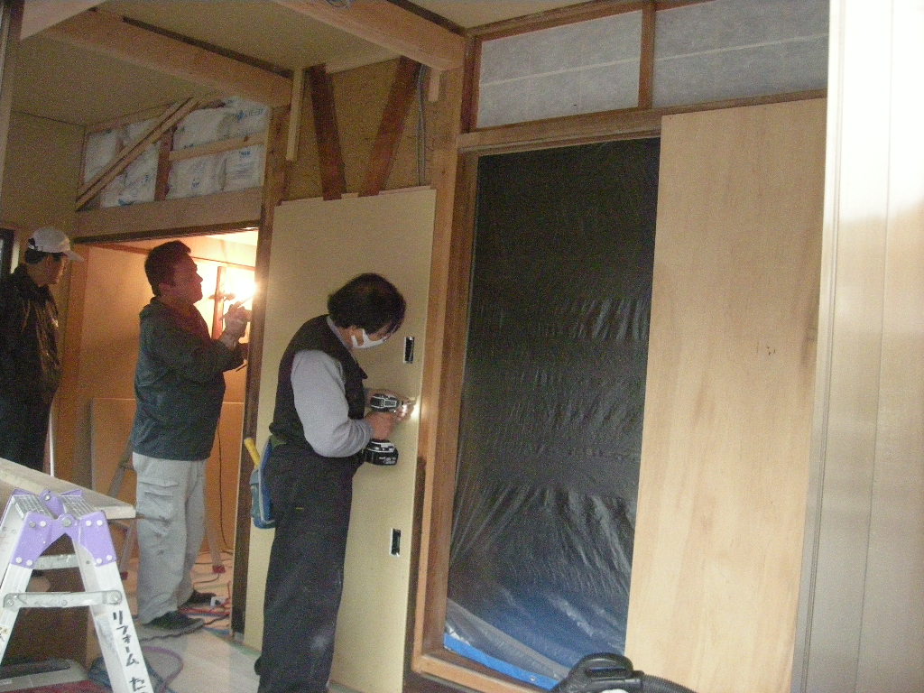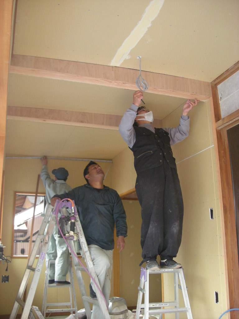骨組みが終わったらクロス下地のボードを施工して行きます!!