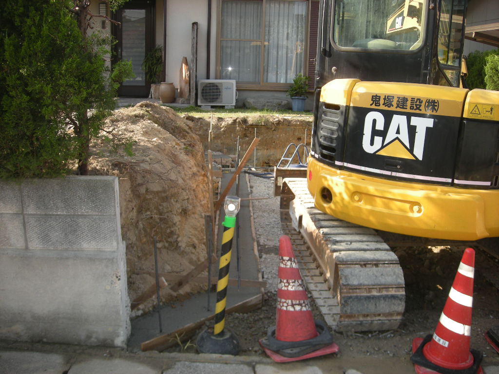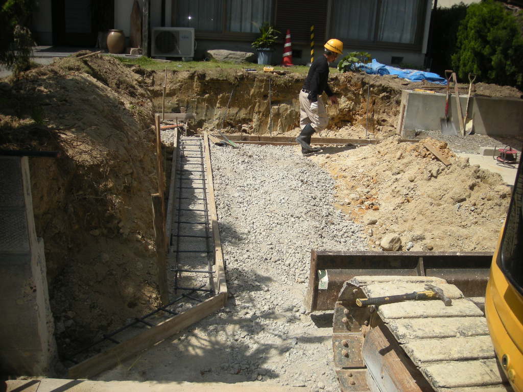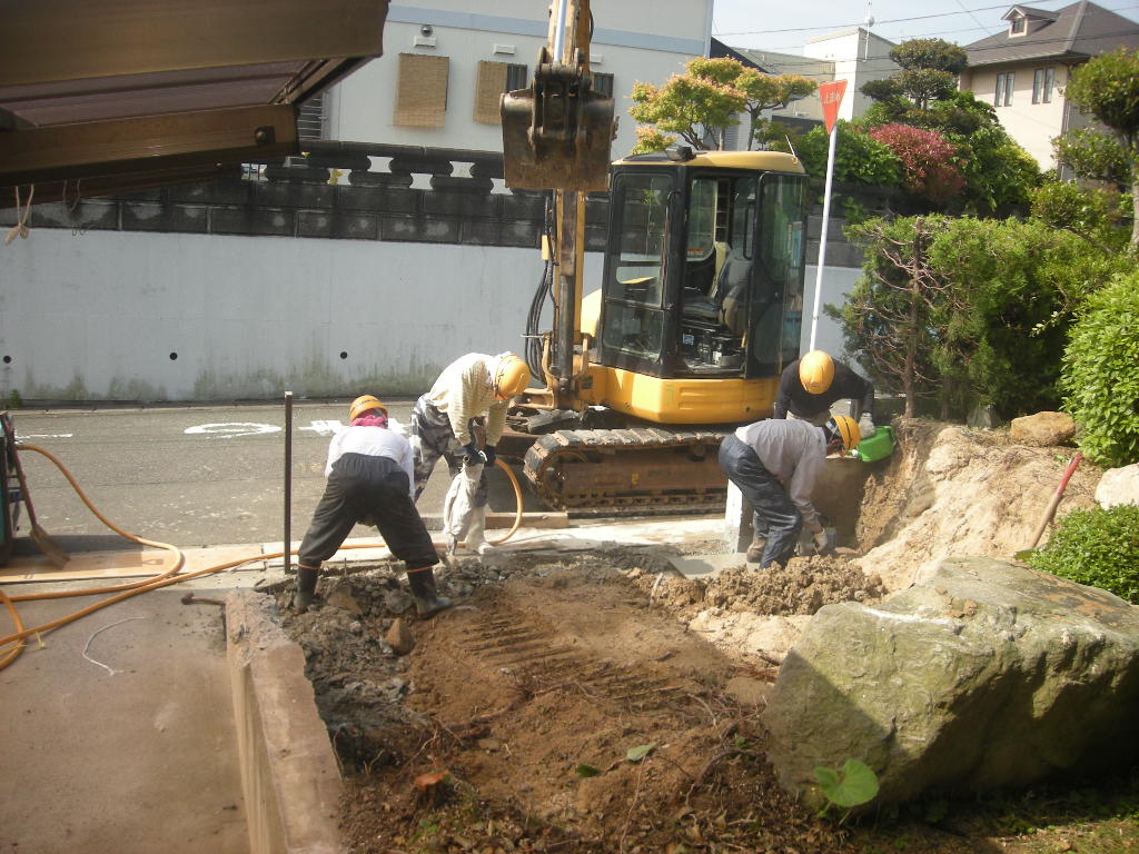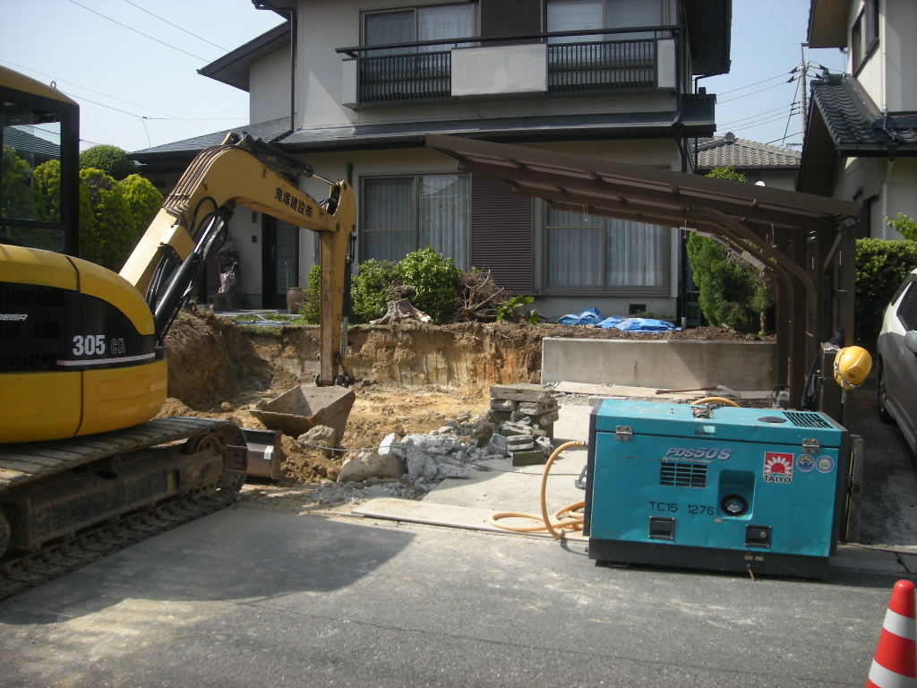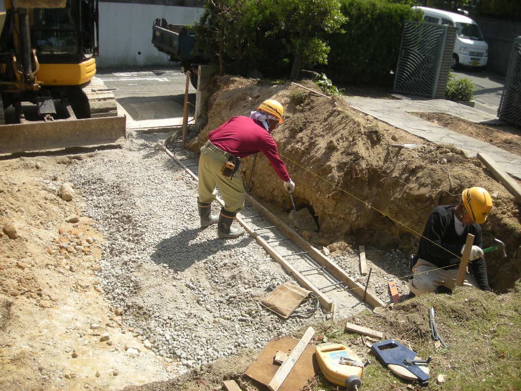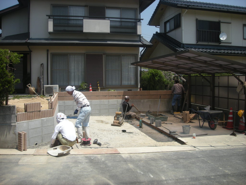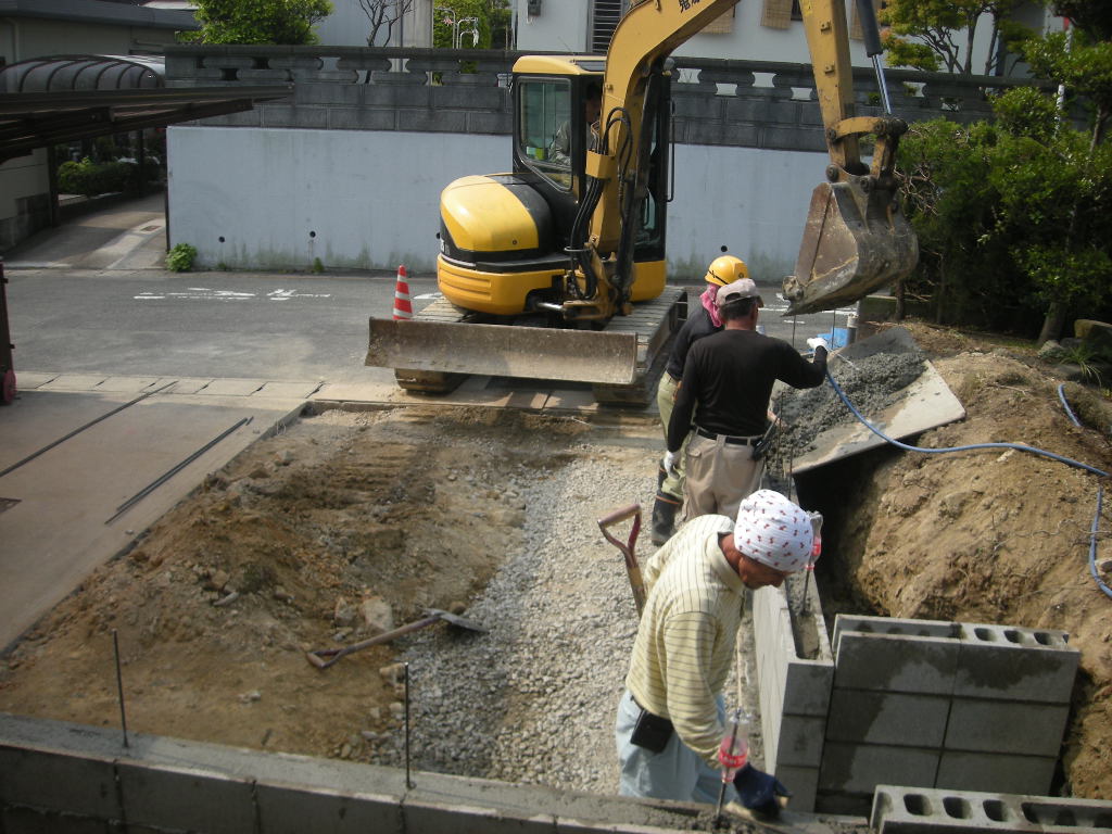 今日は前回のブログで紹介した川中豊町某邸の駐車場増設工事の2日目からの